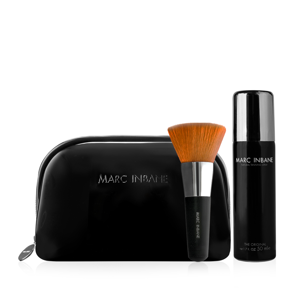 Met deze set heb jij je favoriete MARC INBANE tanningproducten altijd bij de hand! De Travel Set bestaat uit de Natural Tanning Spray (50 ml), Kabuki Brush en een luxe, handgemaakte clutch.